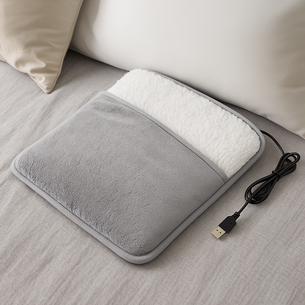 The WarmPad connects easily via USB to any power source — laptop, adapter, or power bank. It gently heats up within seconds and keeps your feet warm and relaxed.